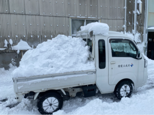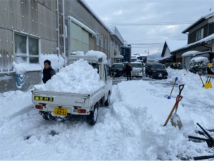 2月8日には、今冬最強寒気(氷点下39℃以下)が、山陰地方上空約5000メートルまで南下し、鳥取市では9年ぶりとなる積雪50センチ超、米子市・松江市でも40センチ超と記録的な大雪となりました。大多数の社員が連日の除雪作業となり、じわりじわりと体力・気力をけずりながらも一心不乱にスコップを動かし続け、8時間におよぶ激闘の幕を下ろしました。